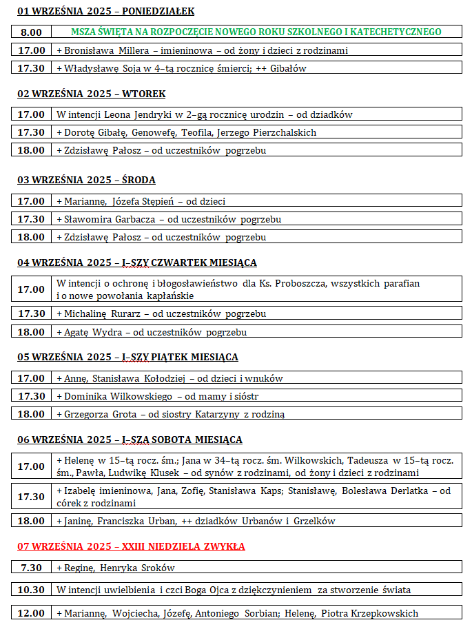 01 WRZESIEŃ 2025 – 07 WRZESIEŃ 2025