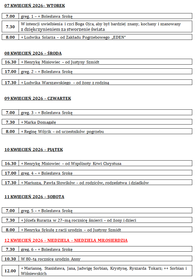 07 KWIETNIA 2026 – 12 KWIETNIA 2026