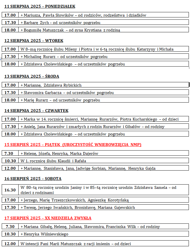 11 SIERPNIA 2025 – 17 SIERPNIA 2025