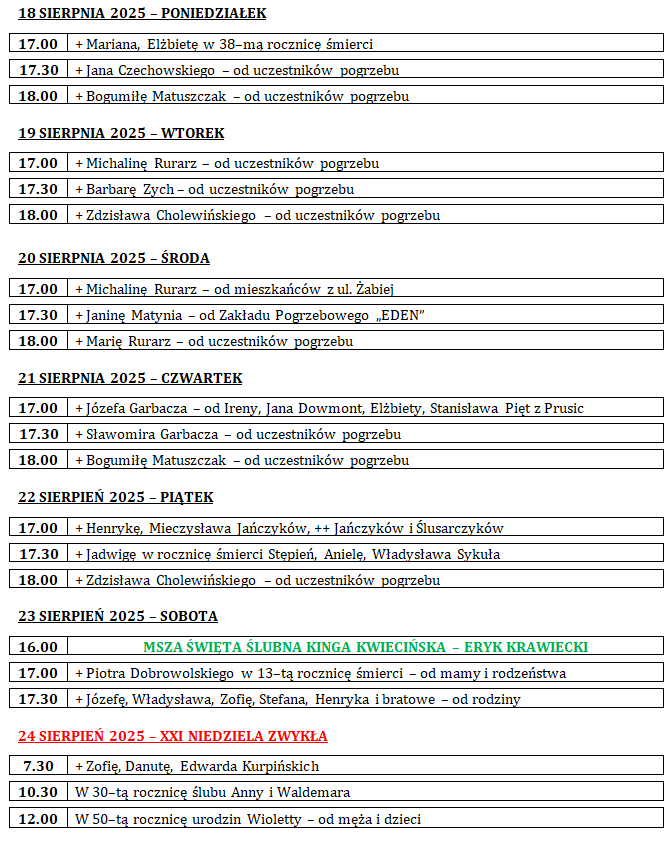 11 SIERPNIA 2025 – 17 SIERPNIA 2025